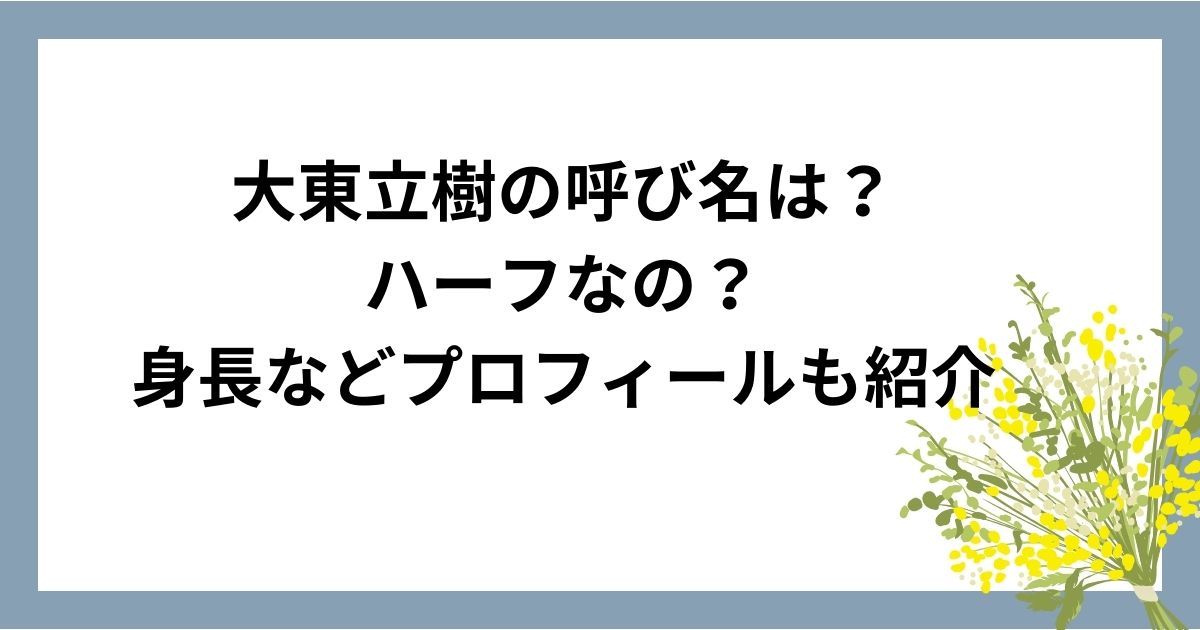 今回は『大東立樹の呼び名は?ハーフなの?身長などプロフィールも紹介』と題して、